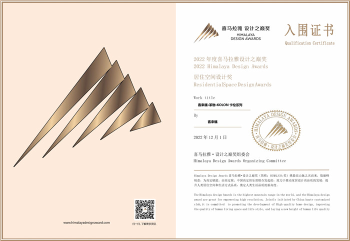 崢嶸歲月,初心不改??蛠砀<揖釉?/span>2022年榮獲“中國家居綜合實(shí)力100強(qiáng)品牌”稱號,其「墨奈系列」入選《2021-2022中國家居行業(yè)精品年鑒》,「客來福·革物·KOLON卡倫系列」入圍“HimalayaDesignAwards喜馬拉雅·設(shè)計(jì)之巔”居住空間設(shè)計(jì)獎。(查看原文)