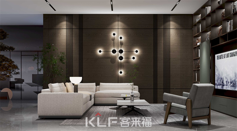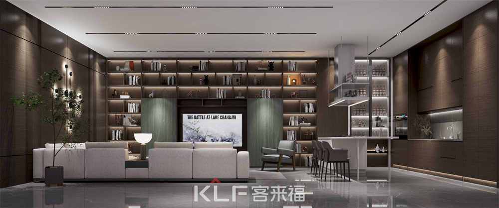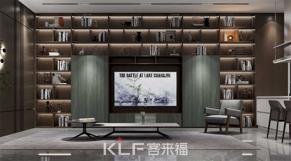 這個(gè)區(qū)域整體采用咖橡橫紋的工藝制作,整體突出大方簡(jiǎn)單,書(shū)柜中間做了簡(jiǎn)單的板式設(shè)計(jì),不僅能讓書(shū)柜充滿設(shè)計(jì)感,也在結(jié)構(gòu)上起到了支撐超長(zhǎng)層板的作用,使其不易變形!