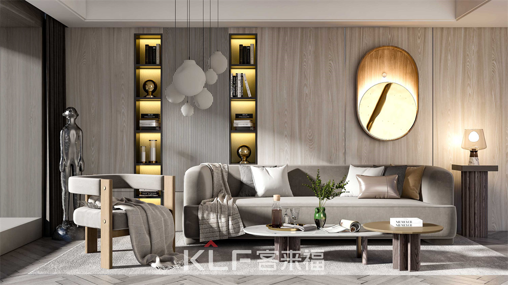 以原木色為基調(diào),讓空間木質(zhì)感更強(qiáng)烈,木材自然形成的紋理在經(jīng)歷精工匠造后,讓自然和時(shí)光的沉淀變得越發(fā)清晰可見,塑造出的厚重感和不經(jīng)意間流露出的華貴感,讓木飾面色溫和舒適,給人一種自然而沉靜的感覺。